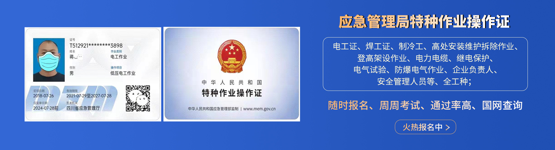 電工證,焊工證,登高架設(shè)證,高處安裝維護拆除證,電力電纜證,繼電保護證,電氣實驗證,防爆電器作業(yè)證,制冷工證,主要負責(zé)人證,安全管理人員證